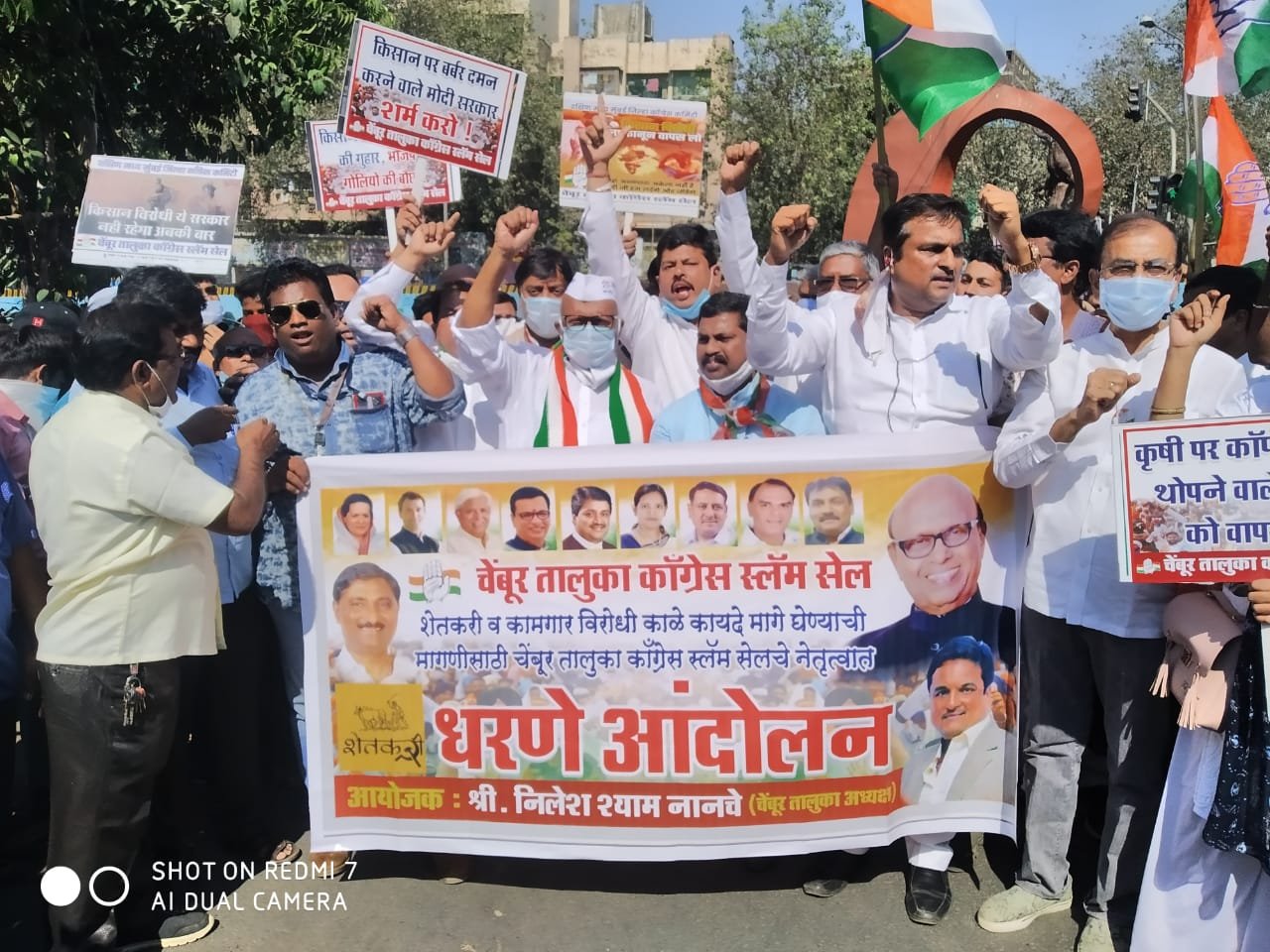 कृषि बिल के विरोध में कांग्रेस ने किया चेंबूर नाका पर आंदोलन
