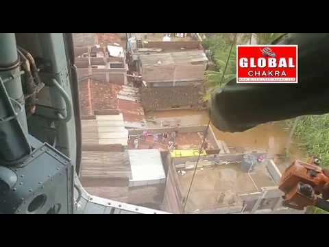 Food packets being sent by IAF in cradle in flood ravaged areas of Bubunal ,40 km east of Kolhapur ..where the rescue teams have not been able to reach.