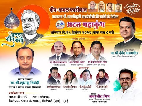 अटल सम्मान से सम्मानित होंगे सांसद डॉ सुधांशु त्रिवेदी २५ को बांद्रा में अटल महाकुम्भ अटलजी ...