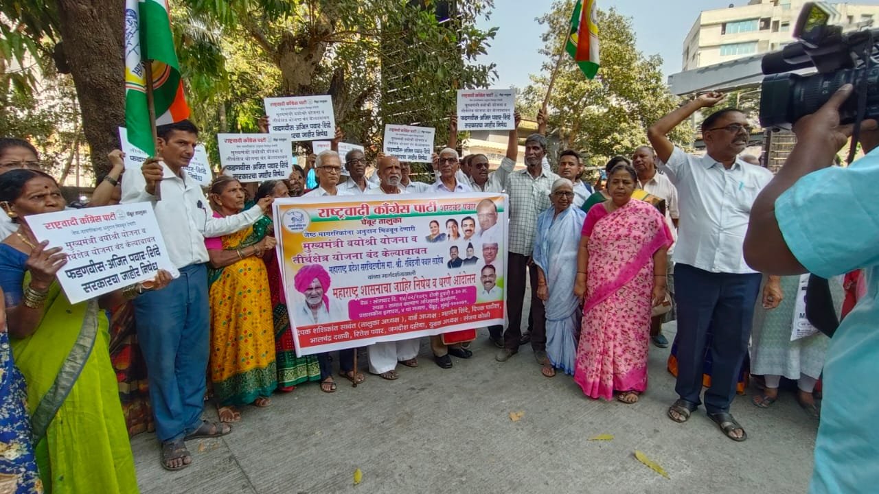 राष्ट्रवादी काँग्रेस शरदचंद्र पवार पक्षाच्या वतीने चेंबूर येथील समाज कल्याण ऑफिस वर धरणे आंदोलन